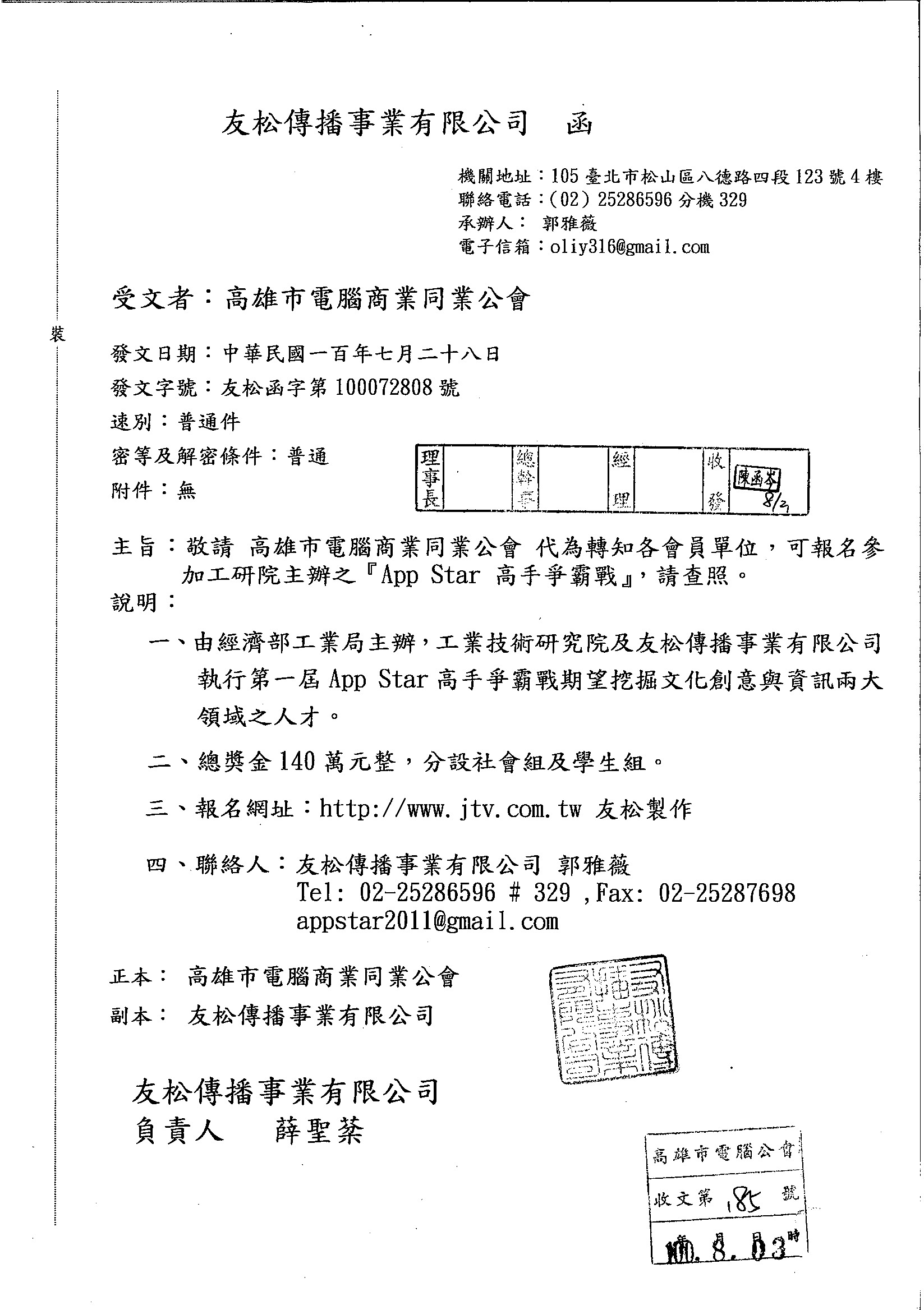 四、聯絡人:友松傳播事業有限公司 郭雅薇