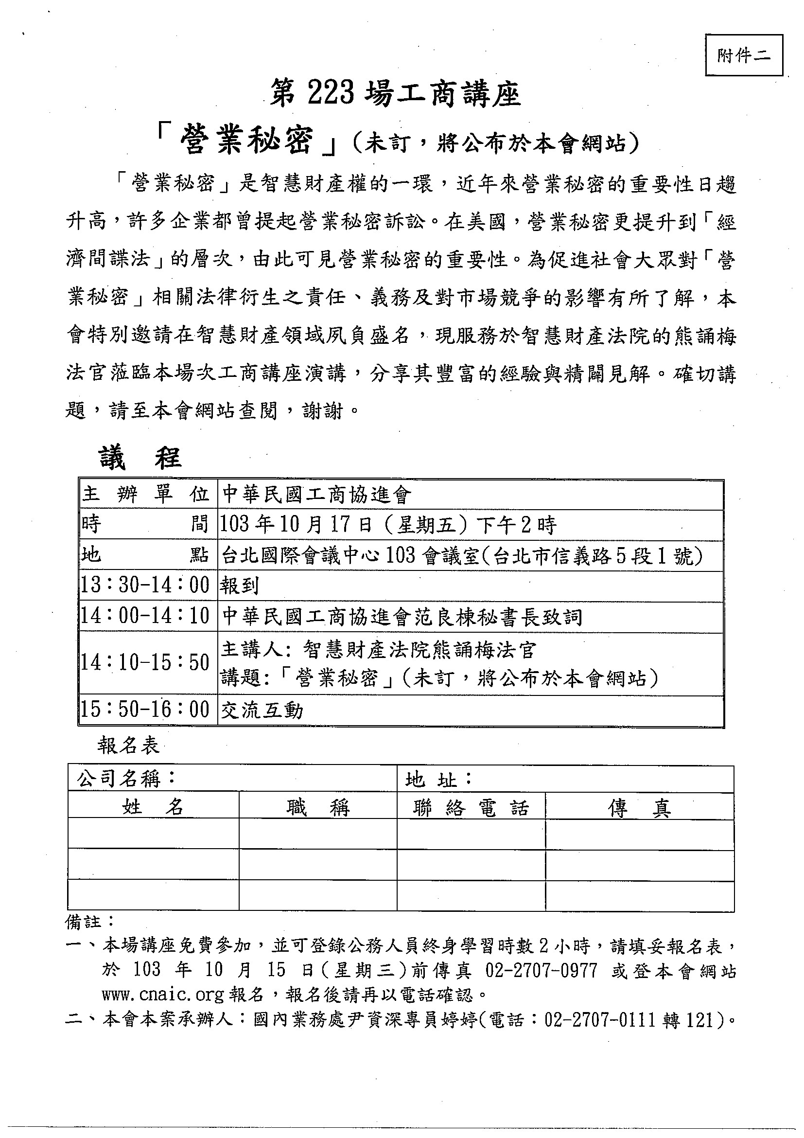 【轉發】中華民國工商協進會-第223場工商講座-「營業秘密」