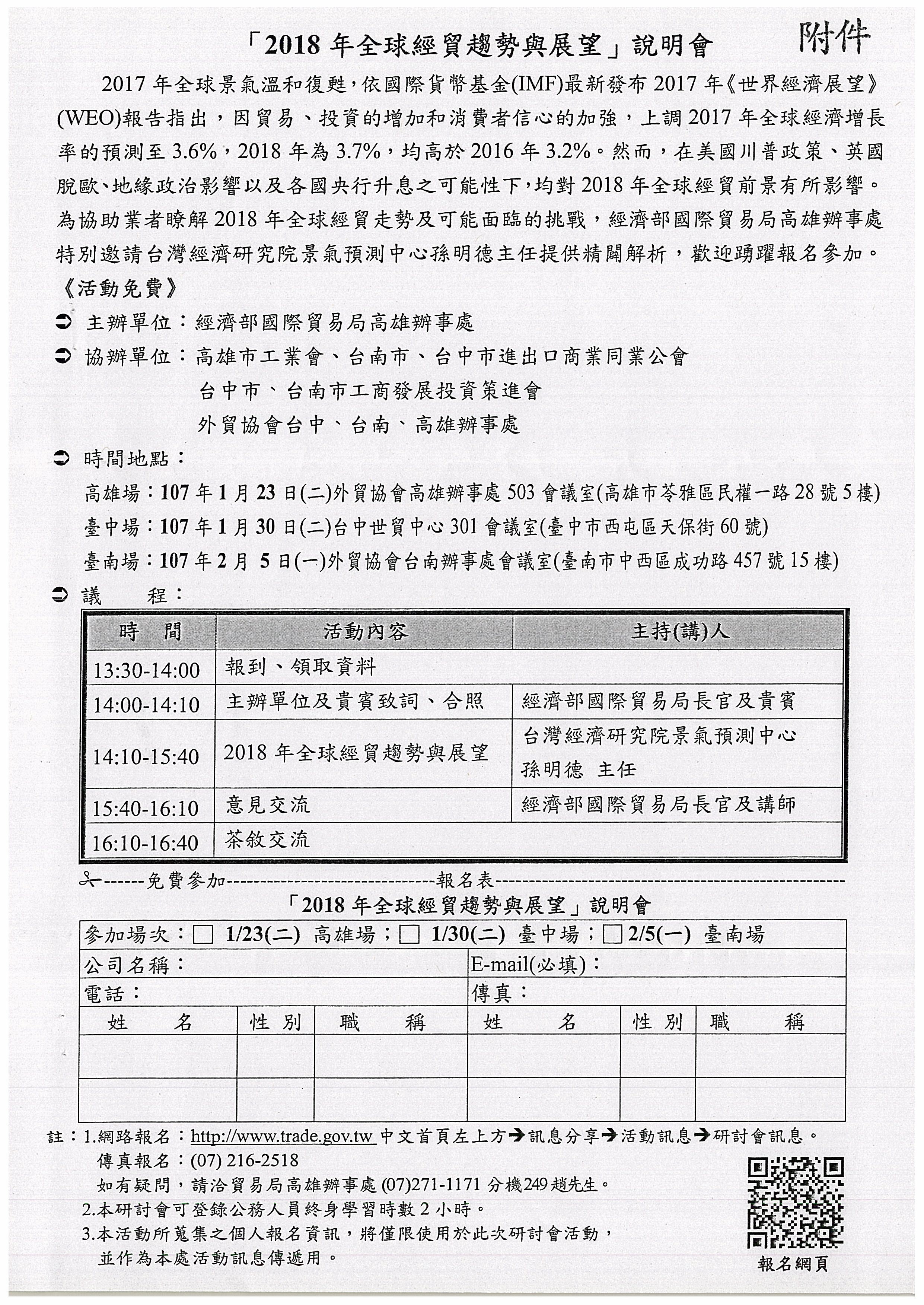 【轉發】經濟部國貿局高雄辦事處-2018年全球經貿趨勢與展望
