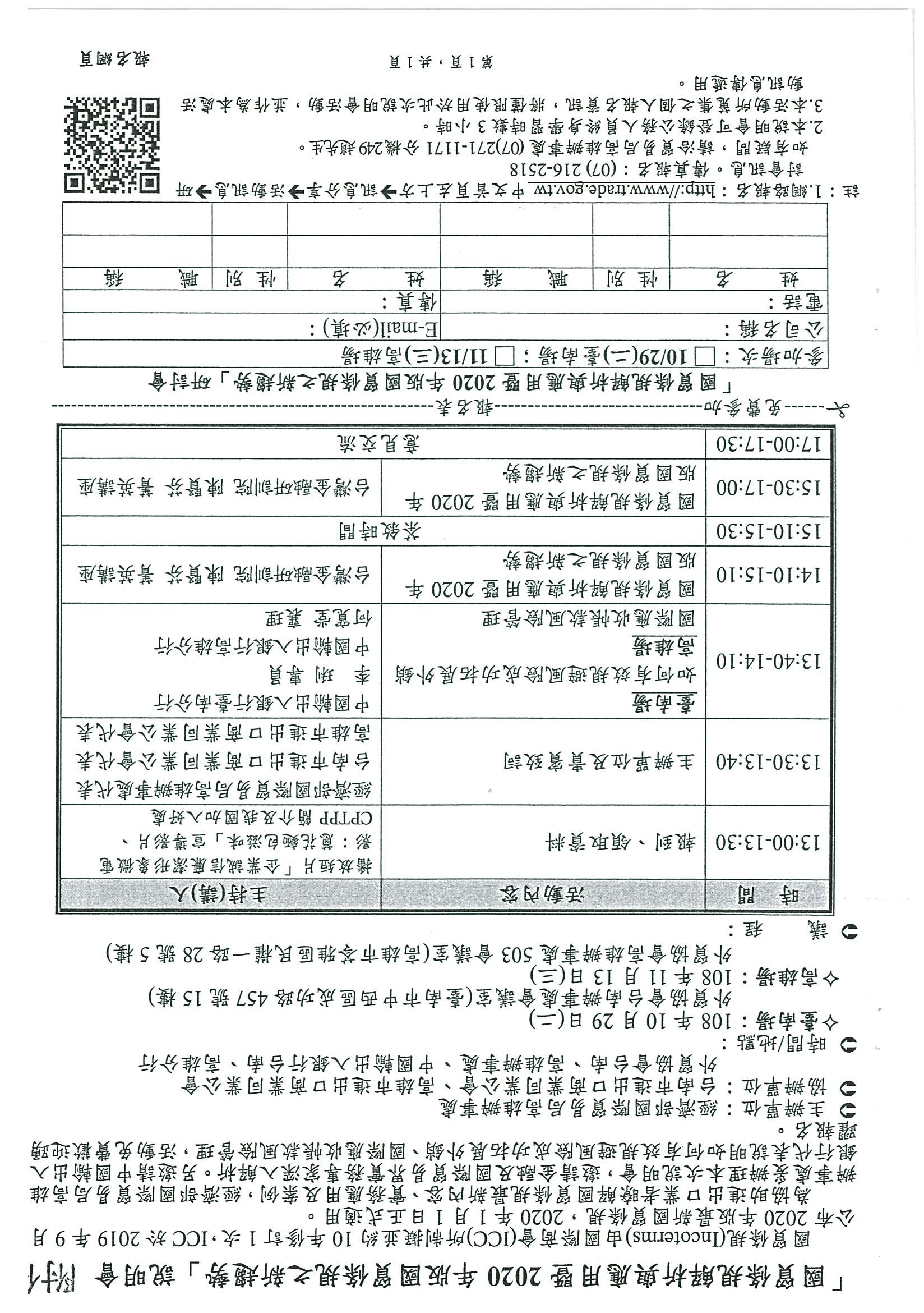 【轉發】經濟部國際貿易局高雄辦事處-國貿條規解析與應用暨2020年版國貿條規之新趨勢